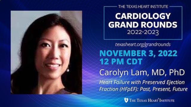 Texas Heart Institute Cardiology Grand Rounds on November 3, 2022. Dr. Carolyn S. P. Lam. HFpEF: Past, Present, Future.